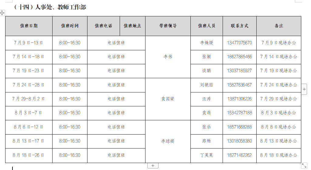 根据学校暑假放假通知,为服务职工,方便大家办事,bv伟德国际体育官方网站安排工作人员暑假期间全天候值班,具体安排如下: